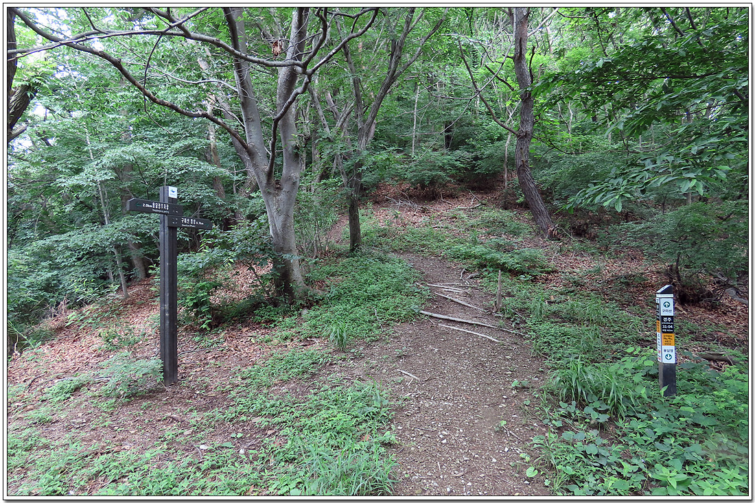 왼쪽으로 빠지는 희미한 갈림길에 오래된 시그널 한 개가 걸려있는 것을 보고 그 길로 접어들었는데