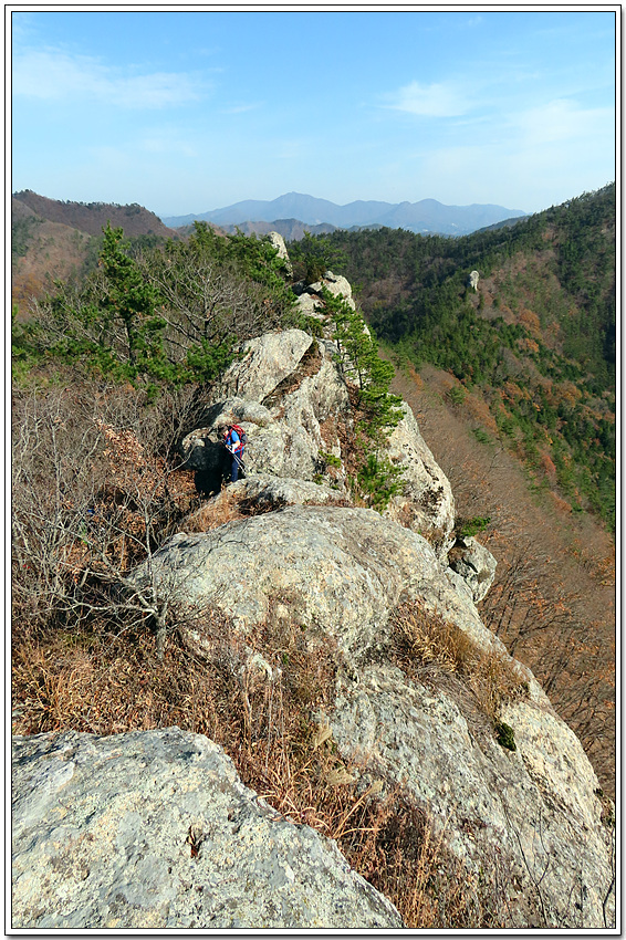 잠깐 갈림길 위의 암봉에 올라 아래를 내려다 보고