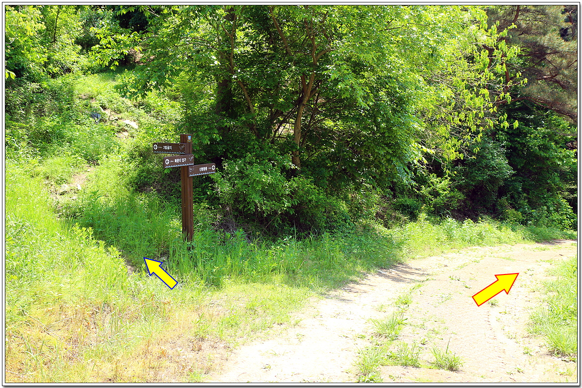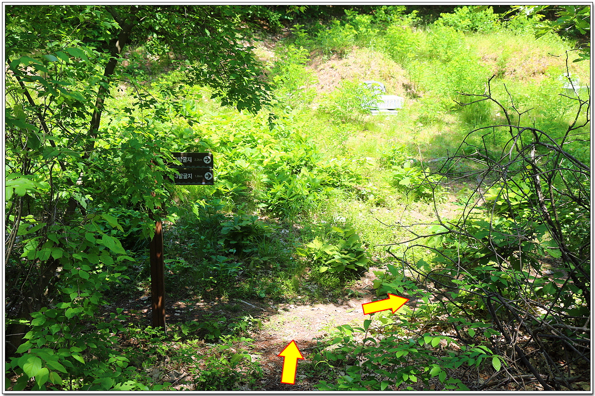 정토암 오른쪽 간이화장실 앞에 탐방로 이정표가 있다