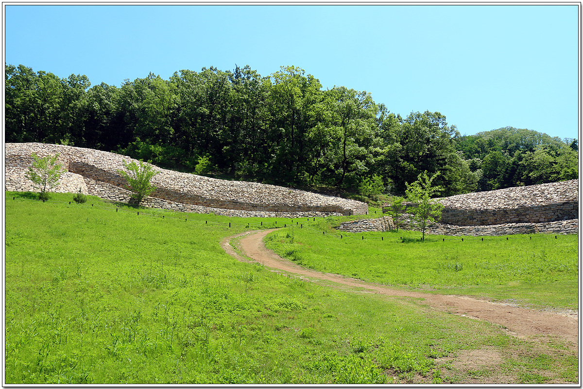 1발굴지에서 4분여 완만하게 내려가면 복원한 치성(稚城)이 보이더니