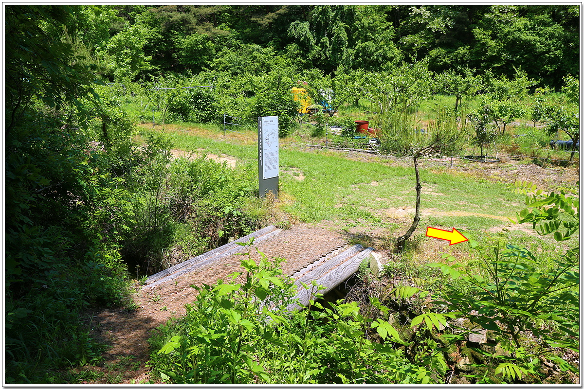 작은 명활산을 내려와 작은 개울에 걸린 통나무 다리를 건너 오른쪽으로