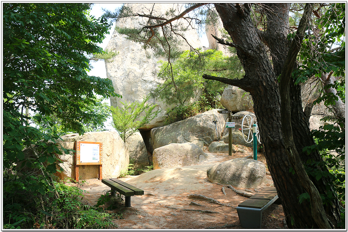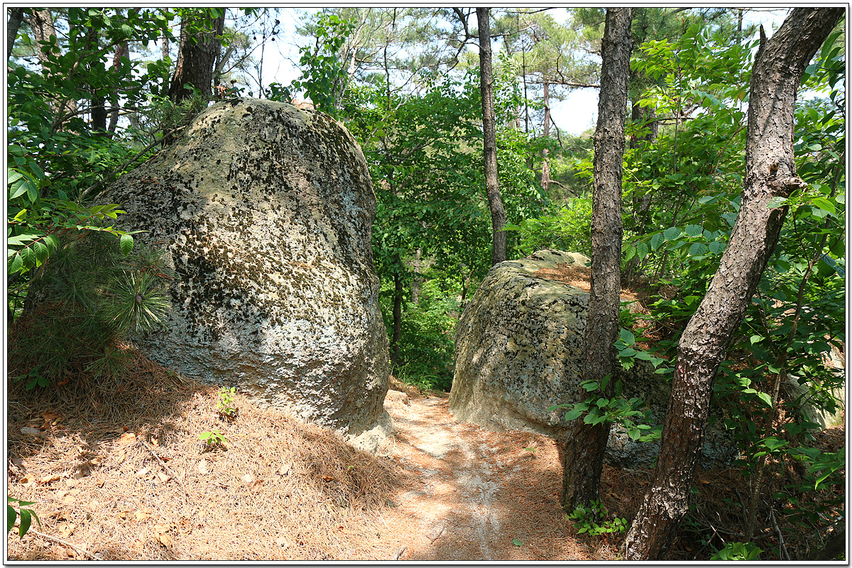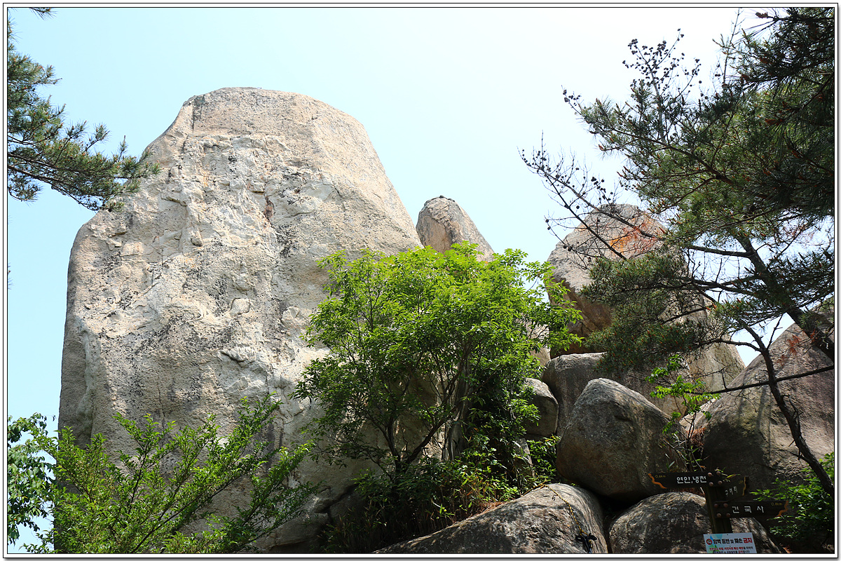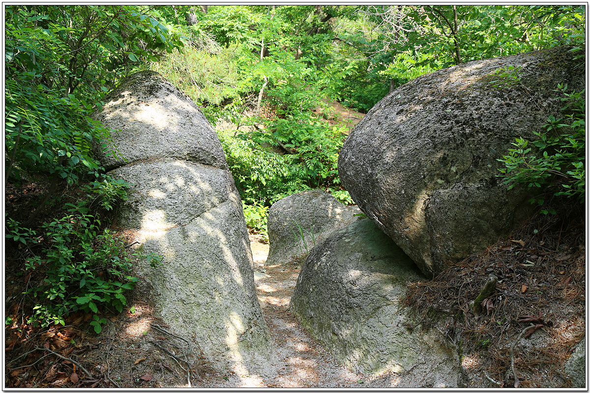 건국사 갈림길에서 왼쪽 좁은 산길로 2~3분여 가면 나오는 바위군(群)