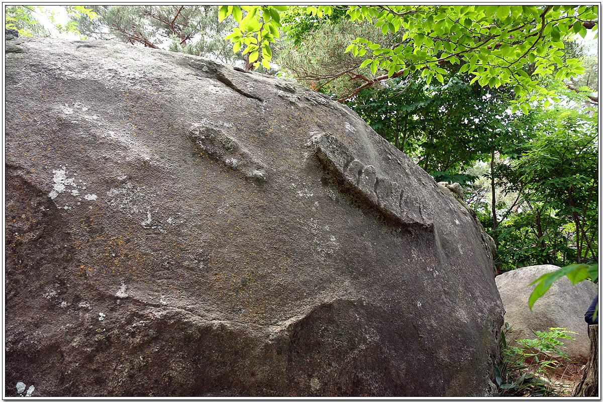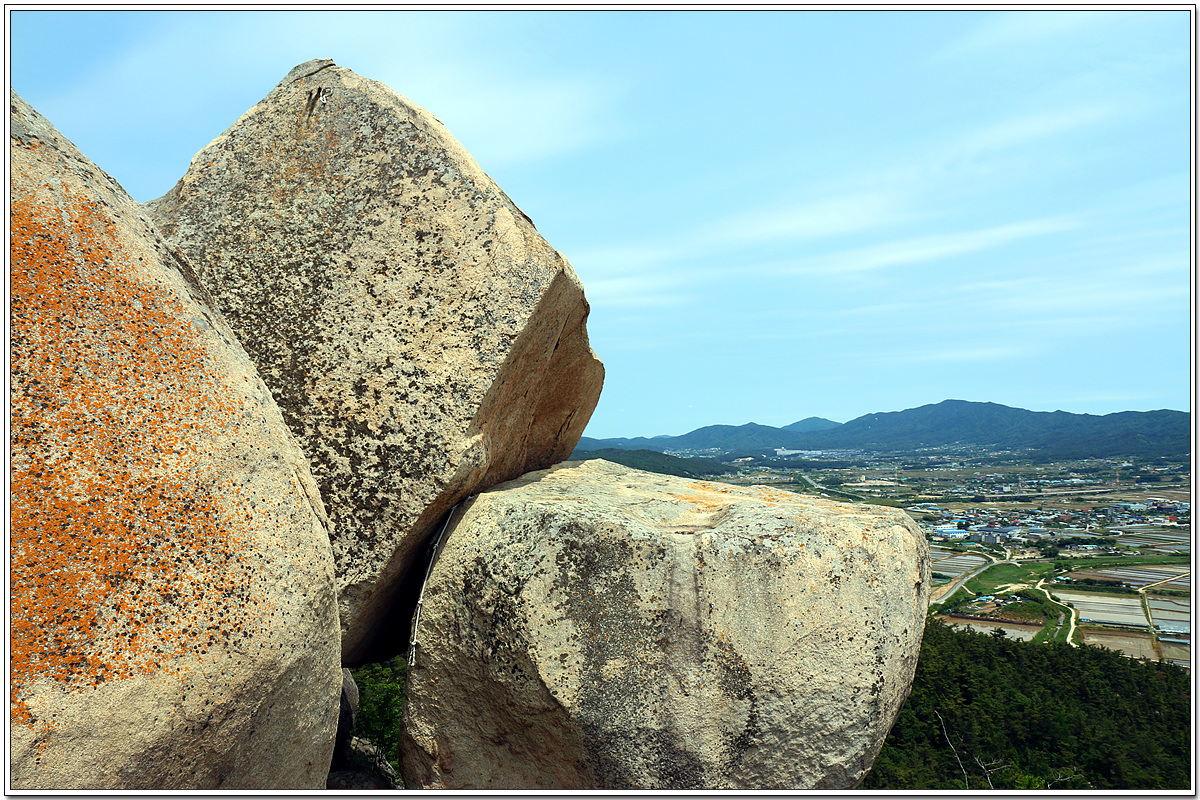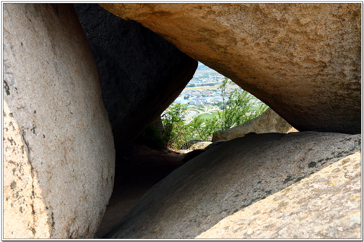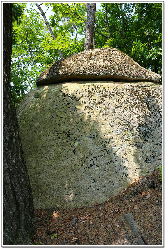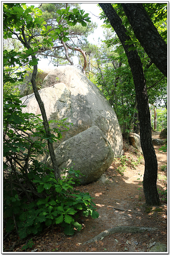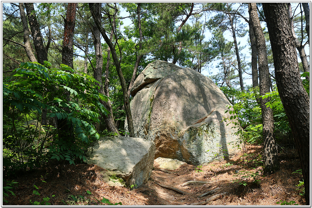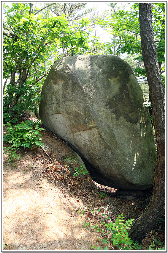 바위가 아래 위로 둘로 쪼개진듯 얹혀 있다