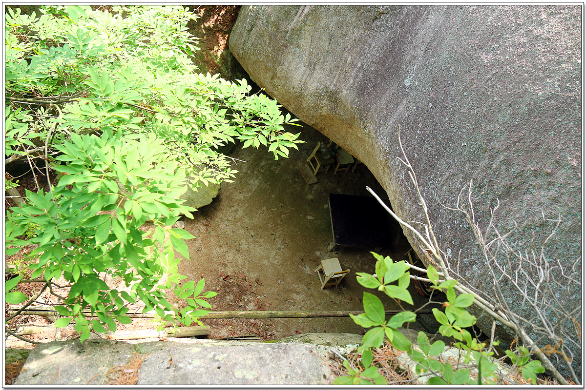 뒷쪽의 커다란 바위 아래에는, 의자와 평상이 보이는 것이 사람이 기거한 흔적이 내려다 보인다