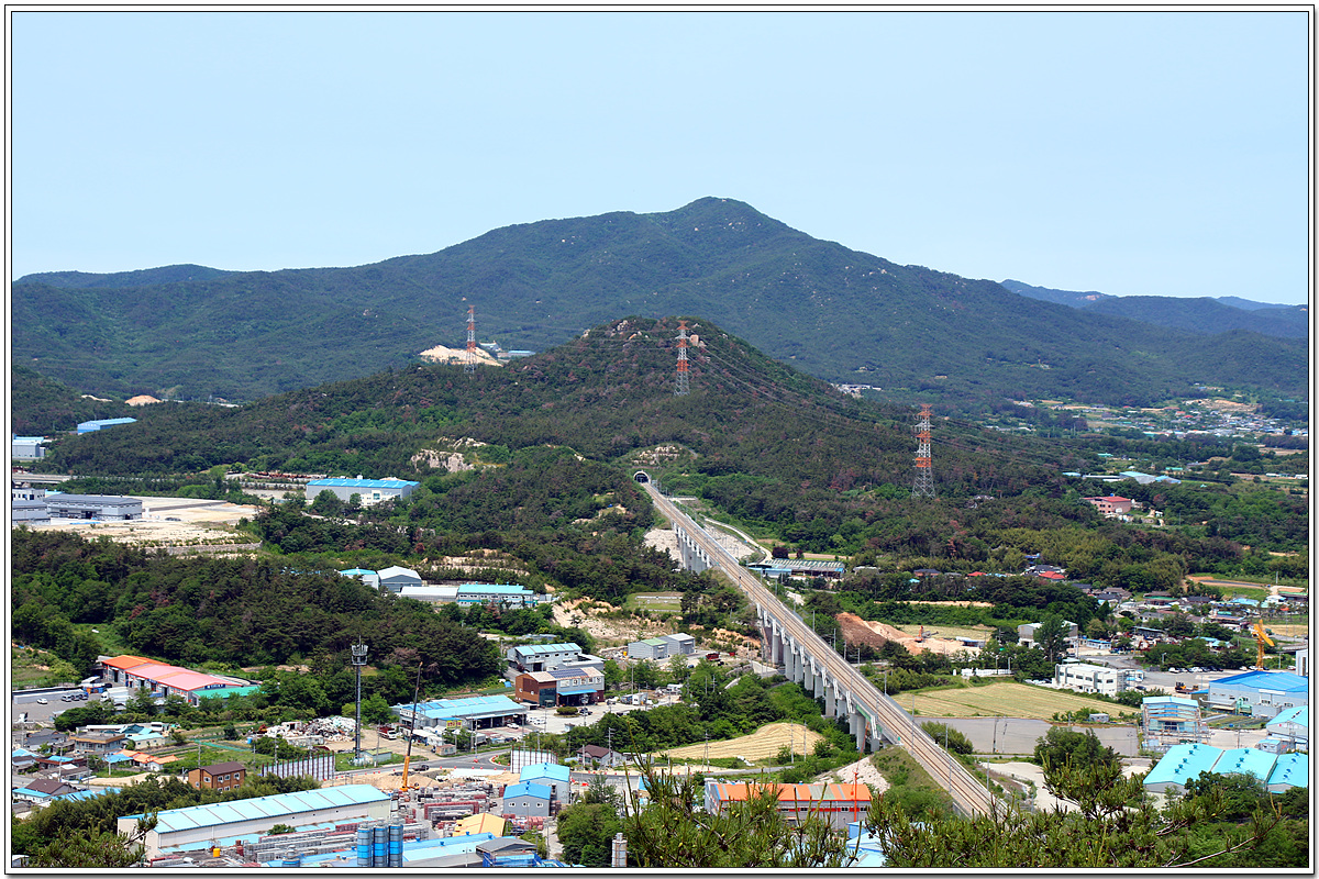 산 아래로 보이는 냉천터널과 주변의 산업단지 공장들