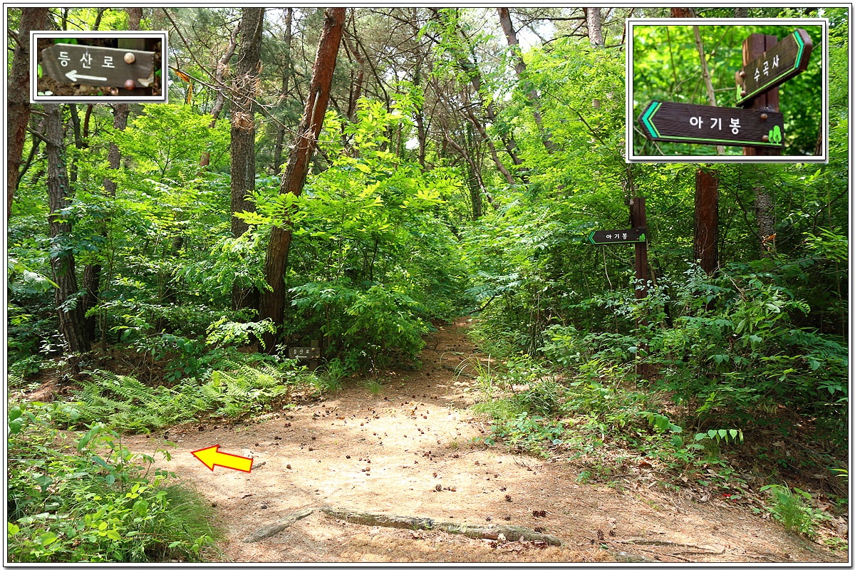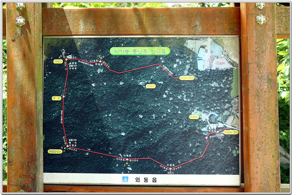 아기봉산은 높이는 낮지만 정상에는 아암(兒巖)이라는 집채만 한 바위가 서로 엉켜있는 것이