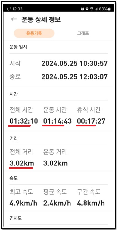 3km 거리에 1시간30분 밖에 걸리지 않는다