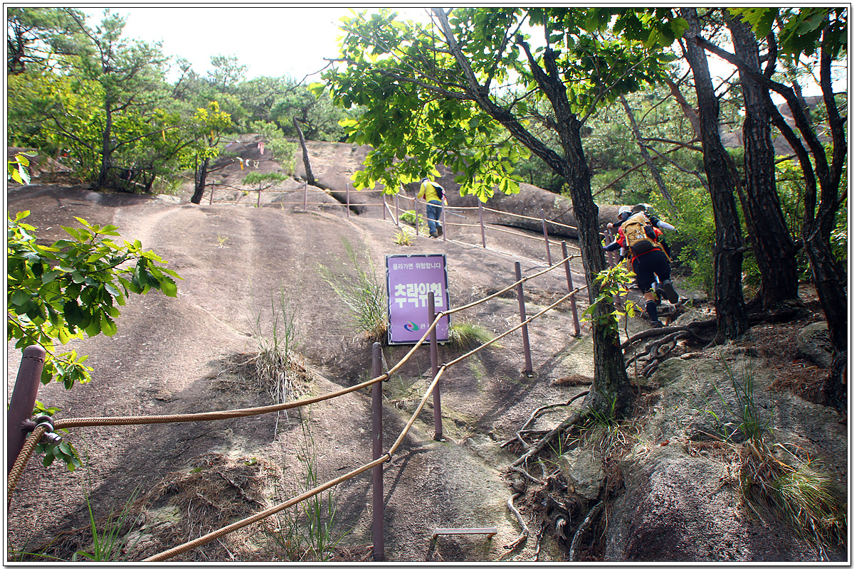 저기까지는 올라갔지만 더 이상은 내려올 때 위험할 것 같아 만류를 했다