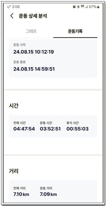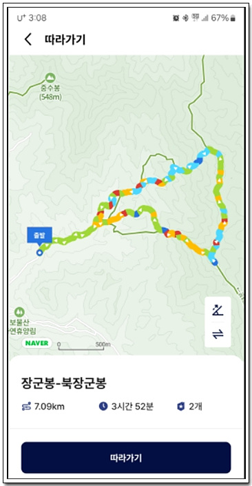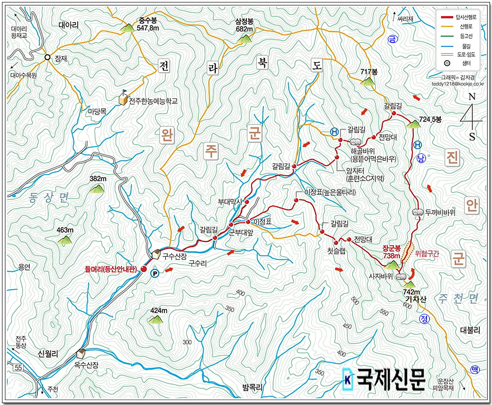 15:00 구수리마을 주차장 원점회귀 / 산행시간 : 4시간 48분