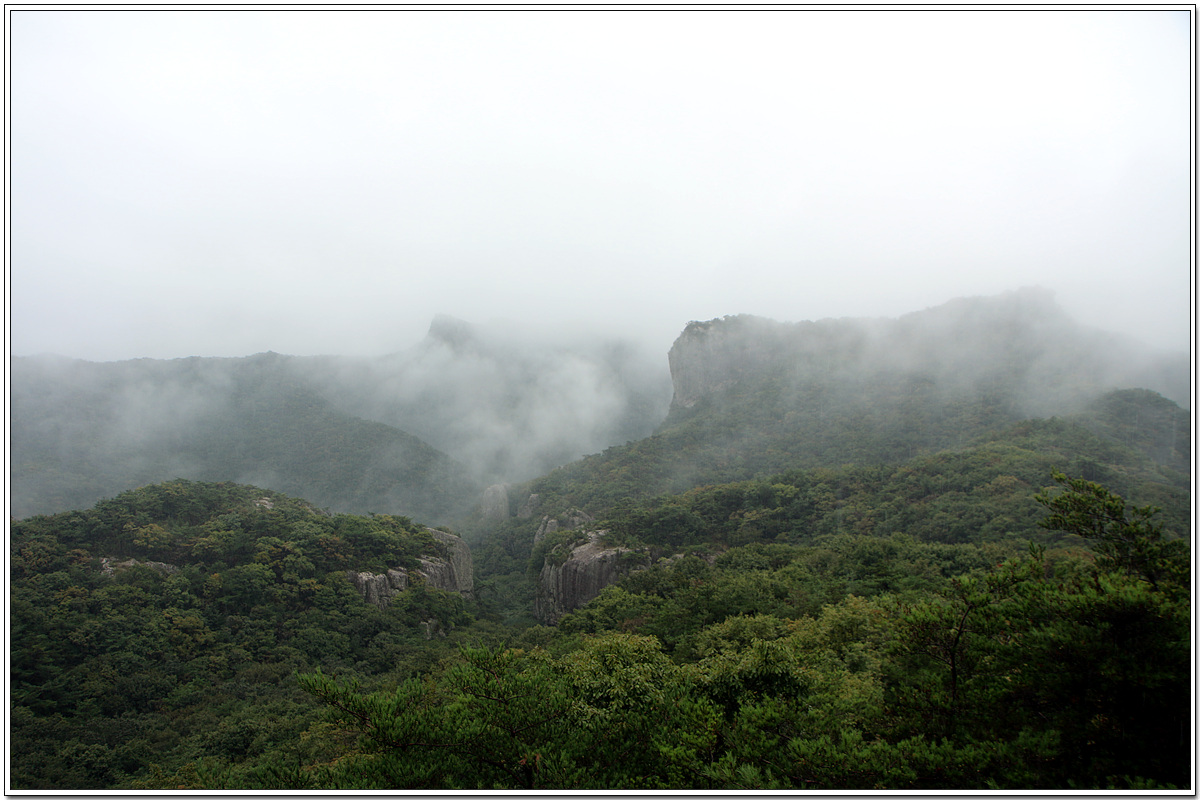 소리재를 지나 천상봉에 서니 조망이 터지면서 비안개 사이로 암봉들이 나타난다