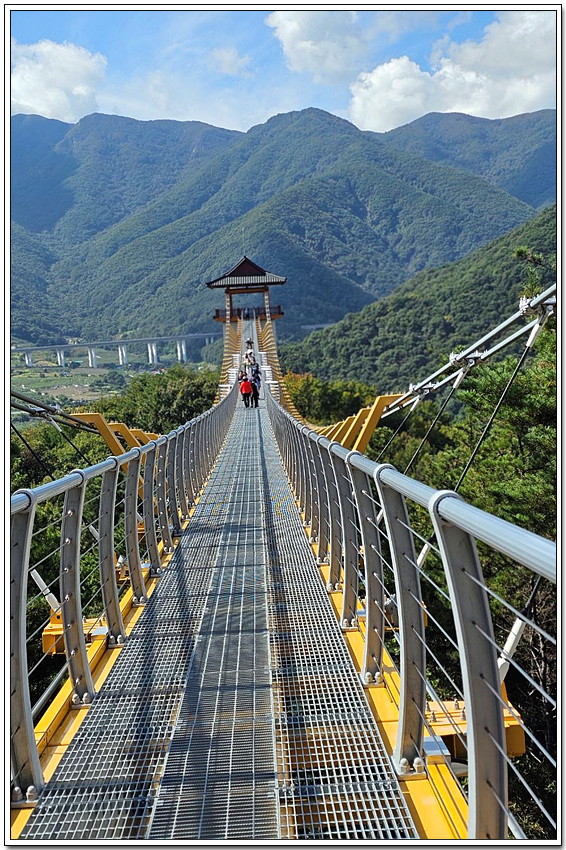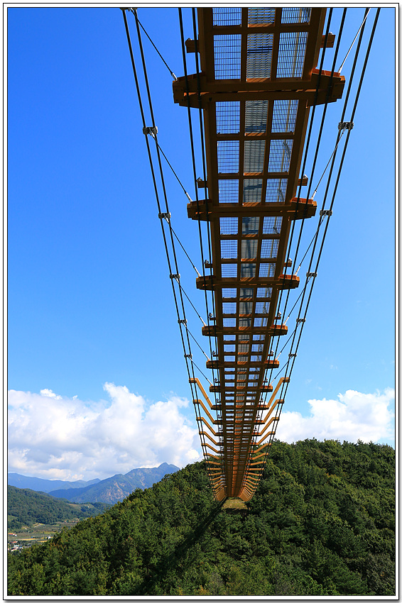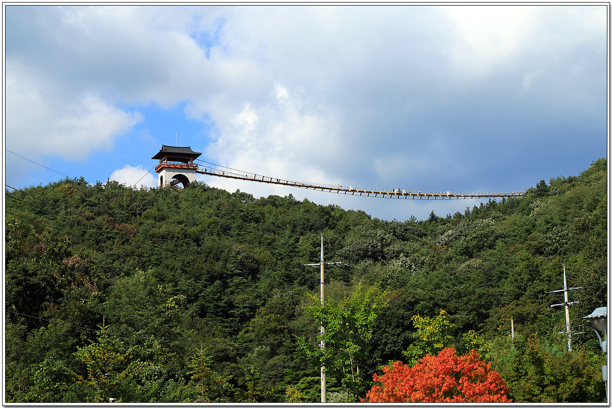 출렁다리가 있는 저 산 밑의 건물은