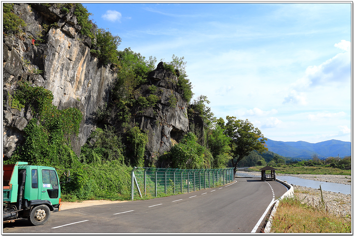 마원3리 마을 입구에 길게 늘어선 병풍바위