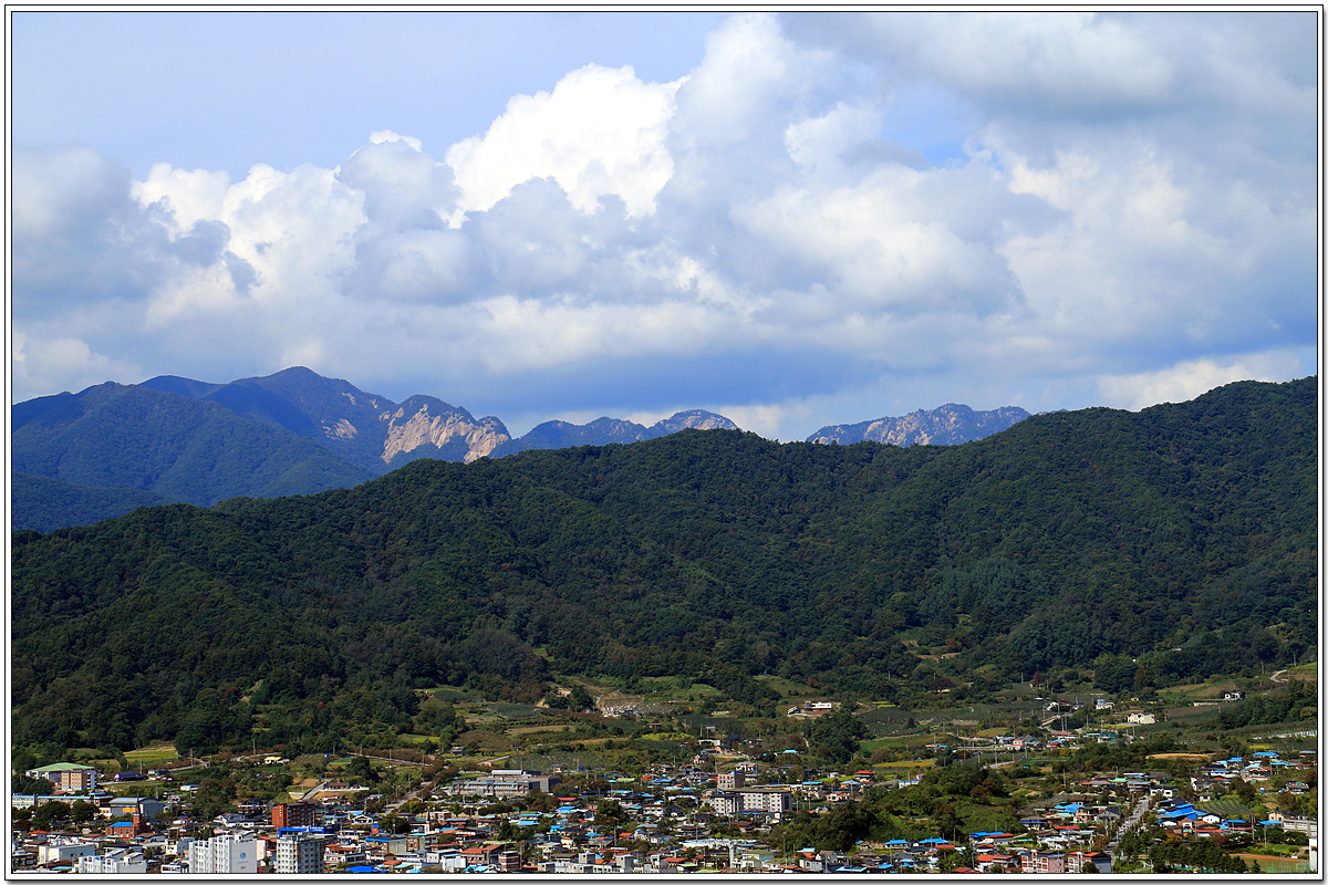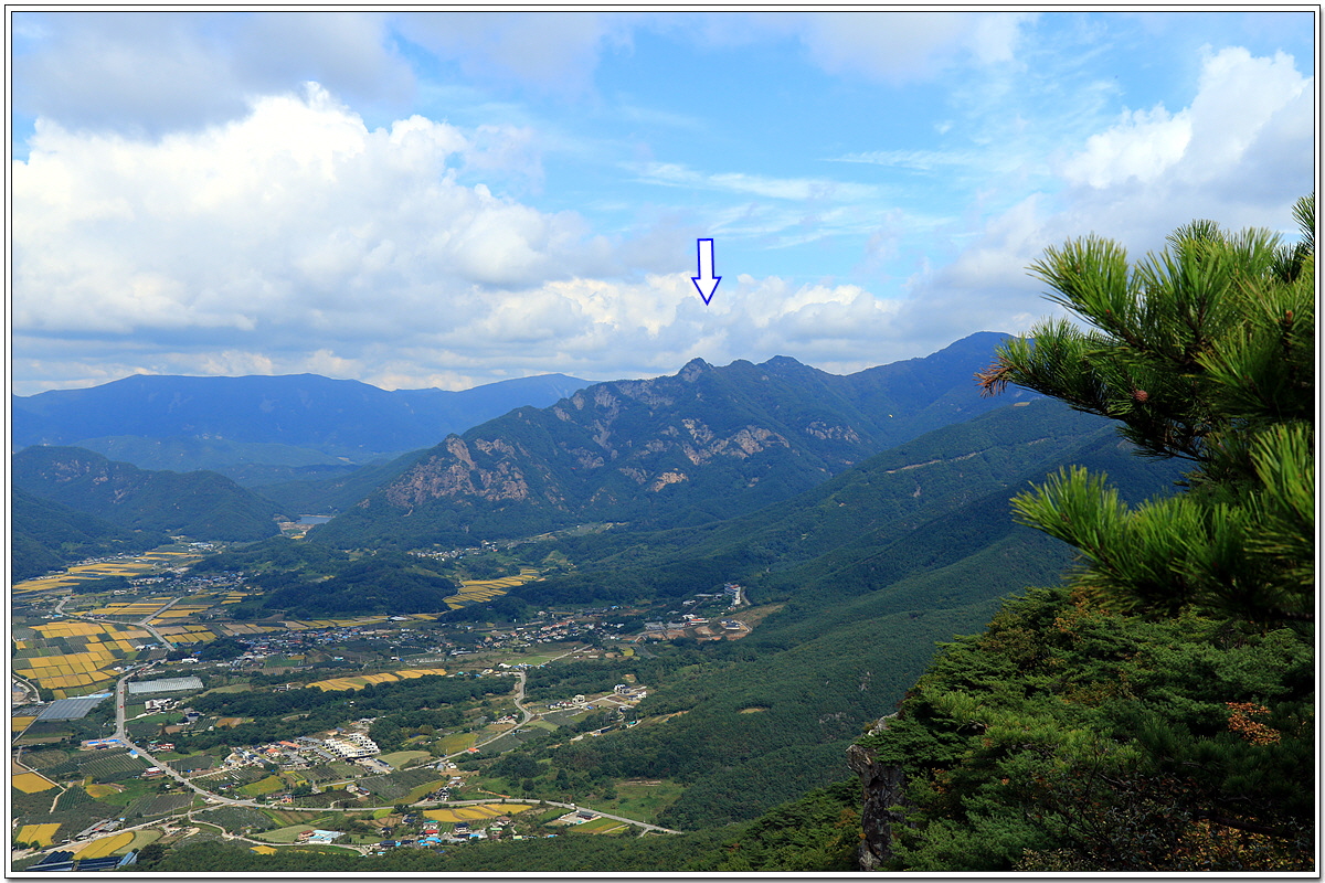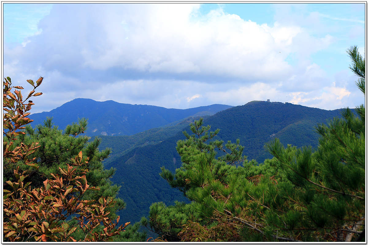 좀 더 가까이 산 능선위에 산불초소 같은 것이 보이는 오른쪽 저 산은 무슨 산인지.....