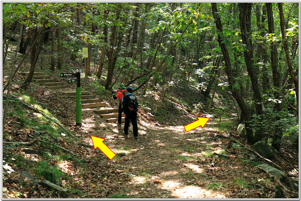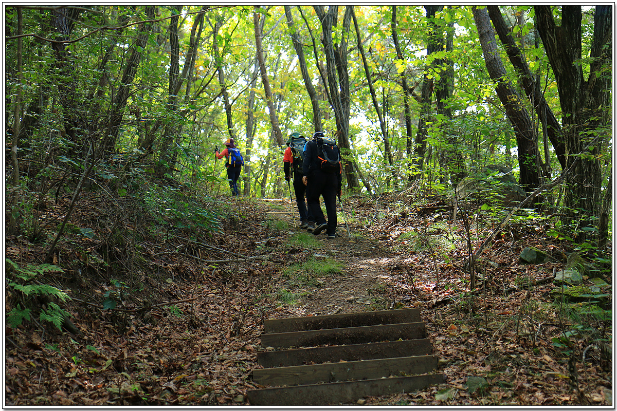 봉명산 정상에서 떡으로 간단히 요기를 하고 오던 길을 되짚어 내려간다