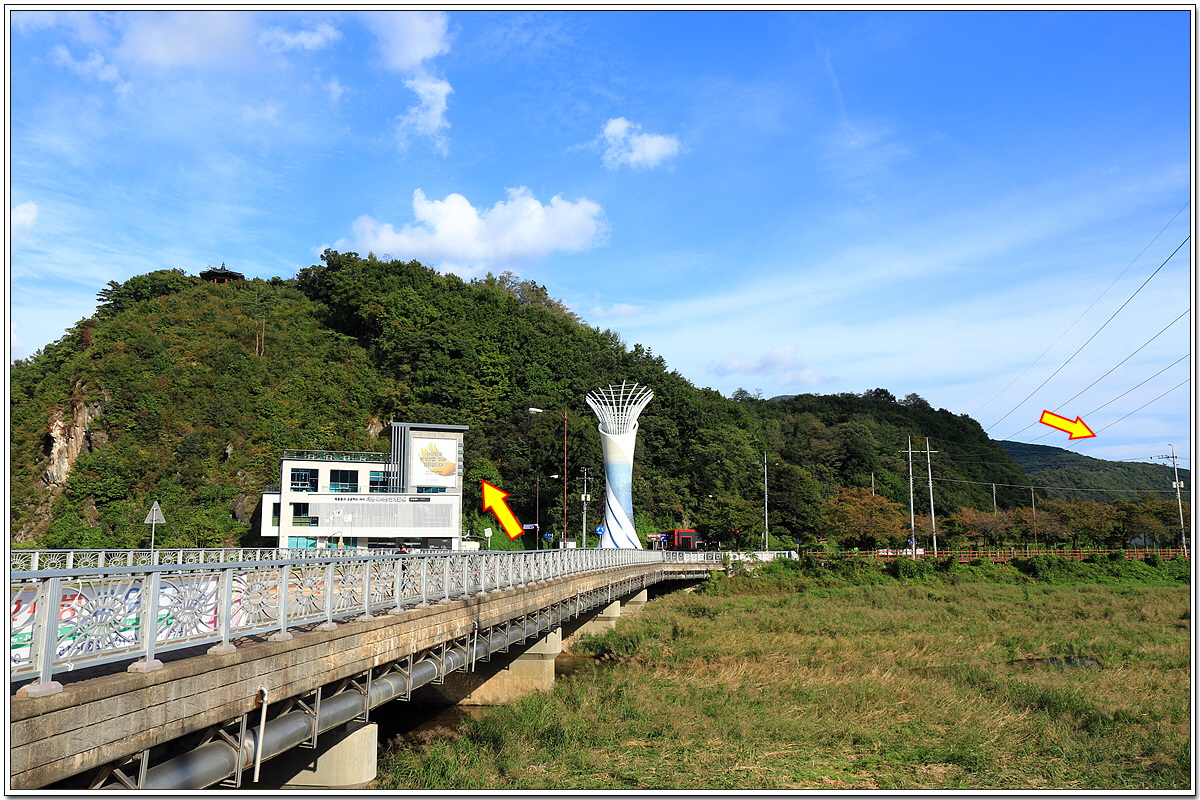 출렁다리 왼쪽으로는 문경읍과 온천단지가 자리하고 있고
