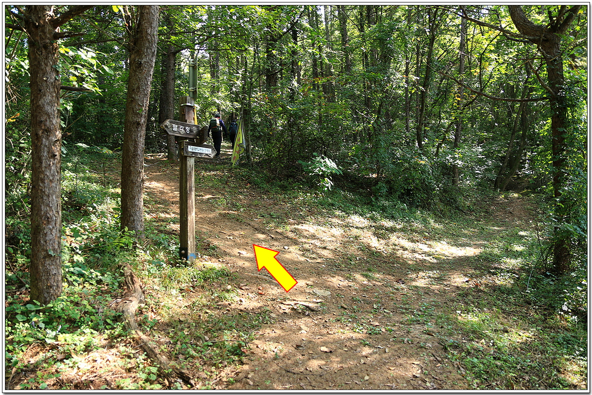 정상에 오른 후 이곳으로 돌아와 저쪽 오른쪽 길을 따라 하산을 할 것이다