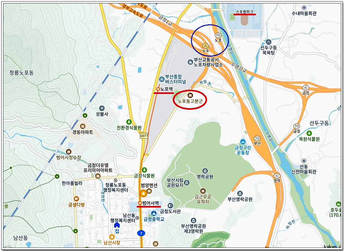 그렇다면 조금전 보았던 그 빈 공지가 노포동 고분군 유적인것은 더 확실해졌는데