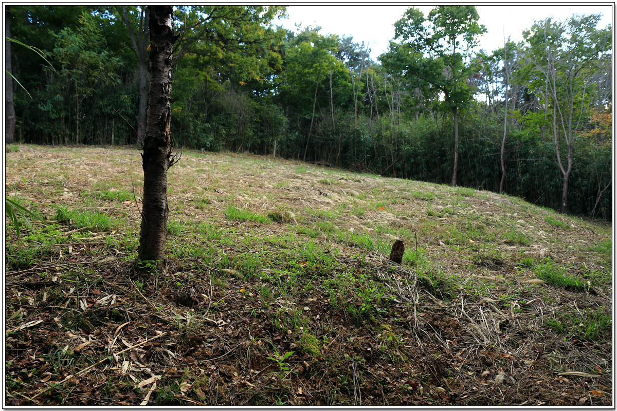 산 사면 구릉지에 비스듬이 경사가 진 공터가 나오는데
