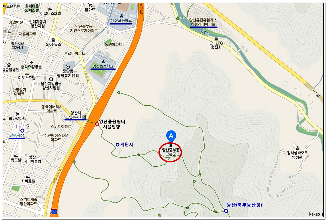 양산 12번 버스를 타고 남부시장에서 내려 계원사 방향으로 조금 걸으면