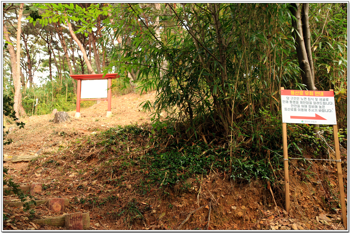 좌우로 갈라지는 갈림길 안내판이 나오며 왼쪽으로 가면 ...