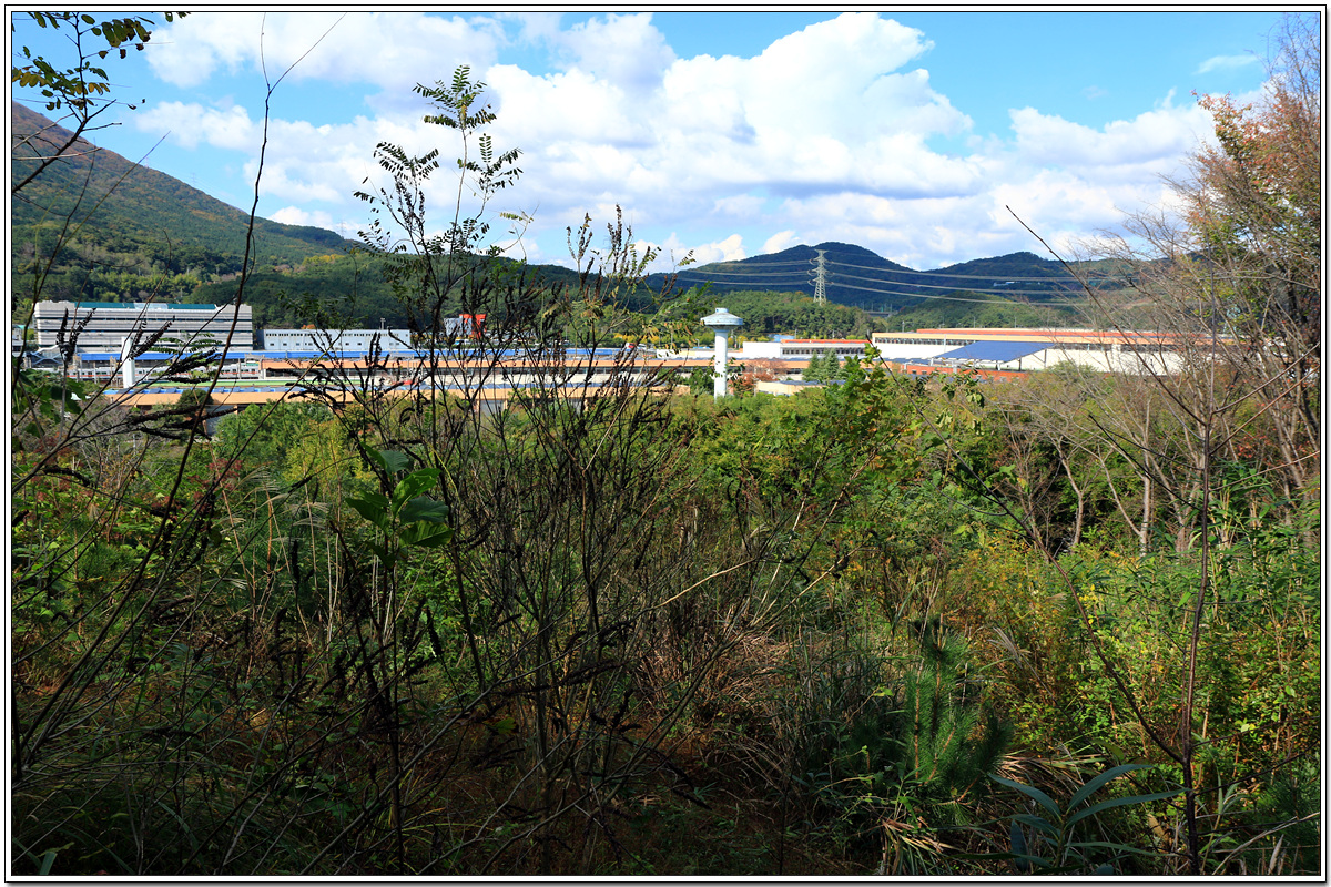 산에서 마주 보이는 건너편의 노포차량기지창과 노포역