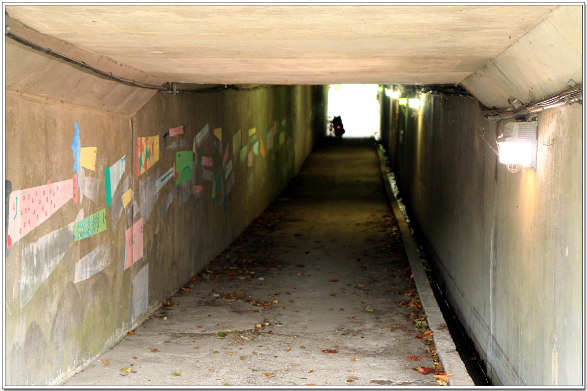 굴다리 터널을 지나 데크계단에 계원사 이정석이 있고