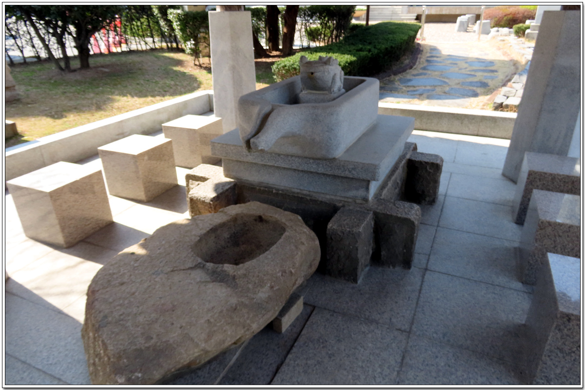 새로 만든 돌판으로 두껑을 덮었으며 그 위에는 두꺼비가 조각된 수조가 얹혀 있다
