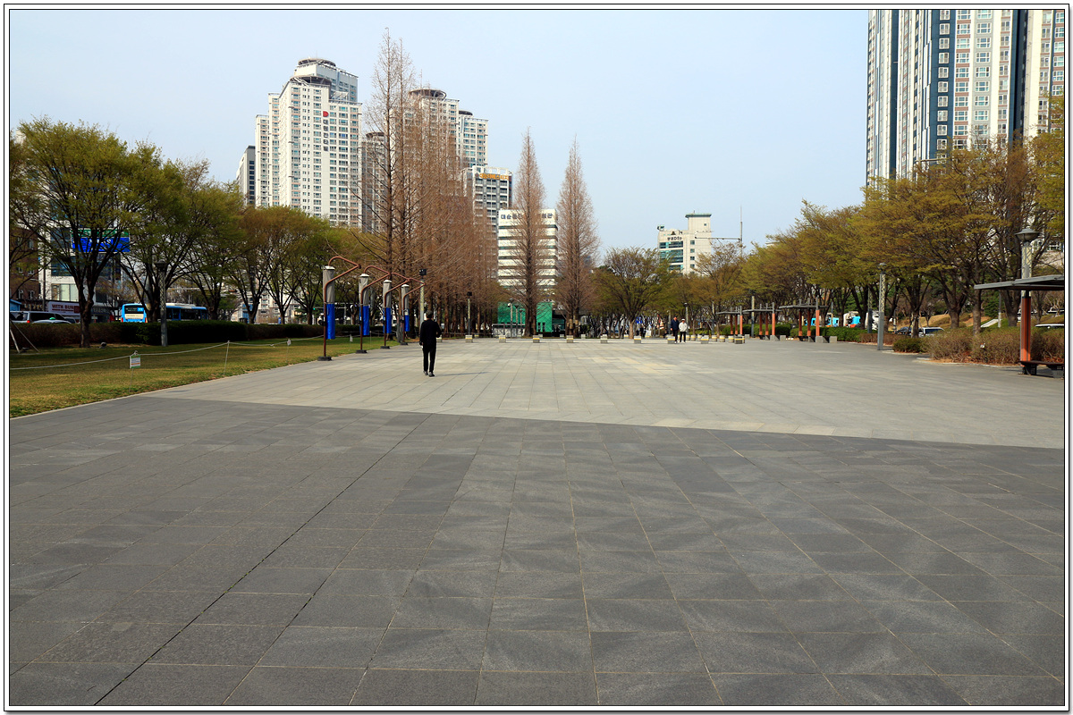 송상현광장의 길이는 700m, 폭 45~78m, 면적은 34,740㎡로 국내 도심광장 가운데 가장 크며