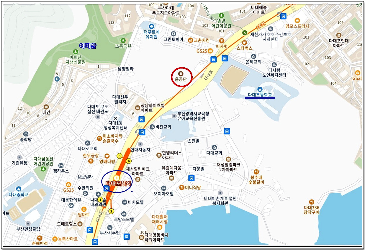 윤공단은 지하철 다대포항역에서 약300m 거리에 있다