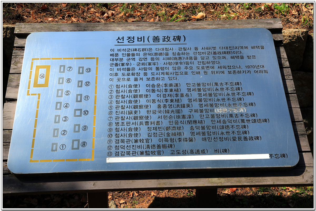 다대첨사, 관찰사 등 사하지역(옛 다대진)에 선정을 베푼 인물들의 은덕을 칭송하는 선정비(善政碑)들을