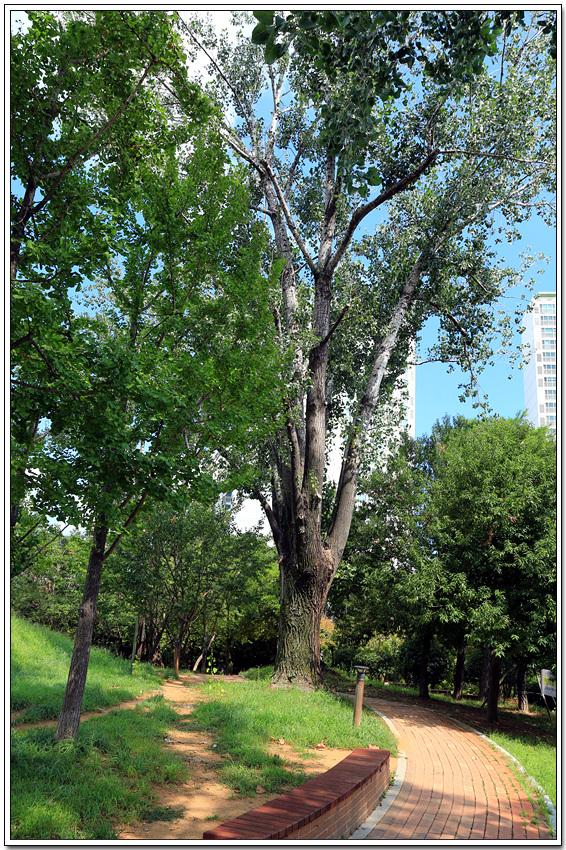 커다란 미루나무 거목 오른쪽에 동래고읍성의 토성 흔적이 보인다