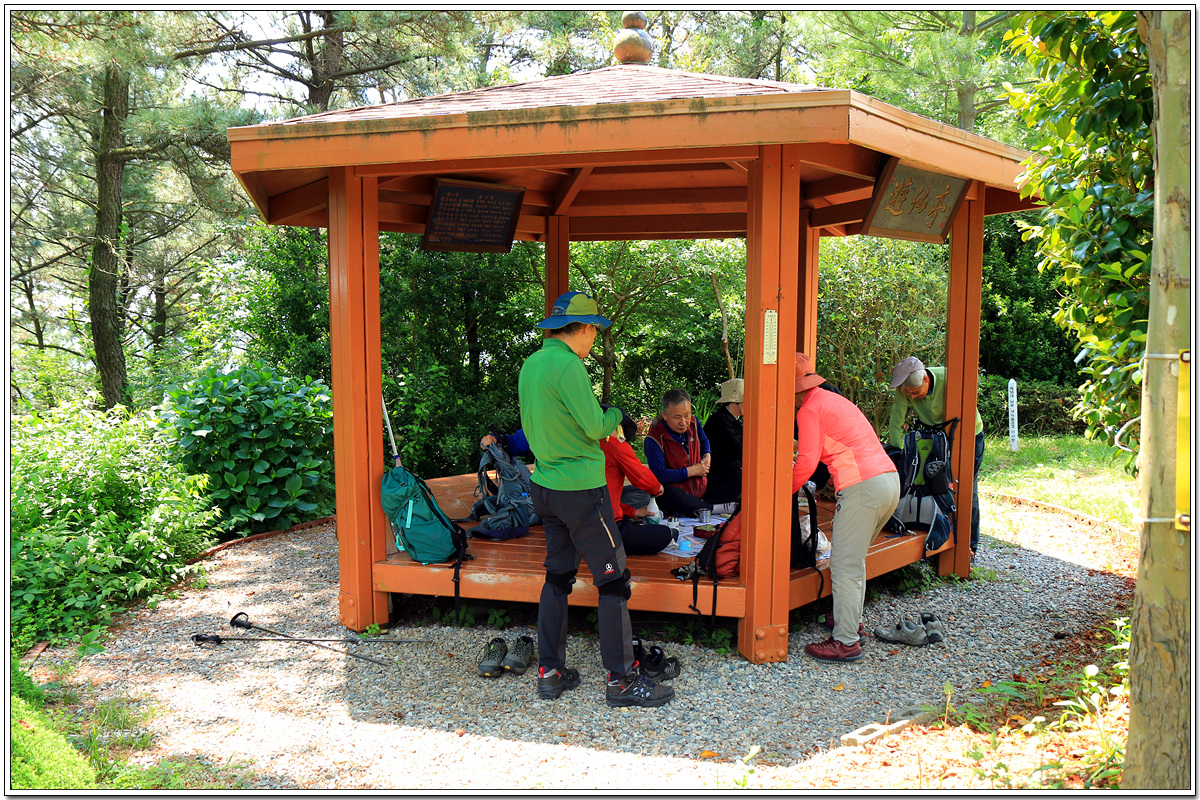180m봉에서 남쪽으로 5분가량 내려가면 정자(日新亭)가 있는 사거리가 나오는데