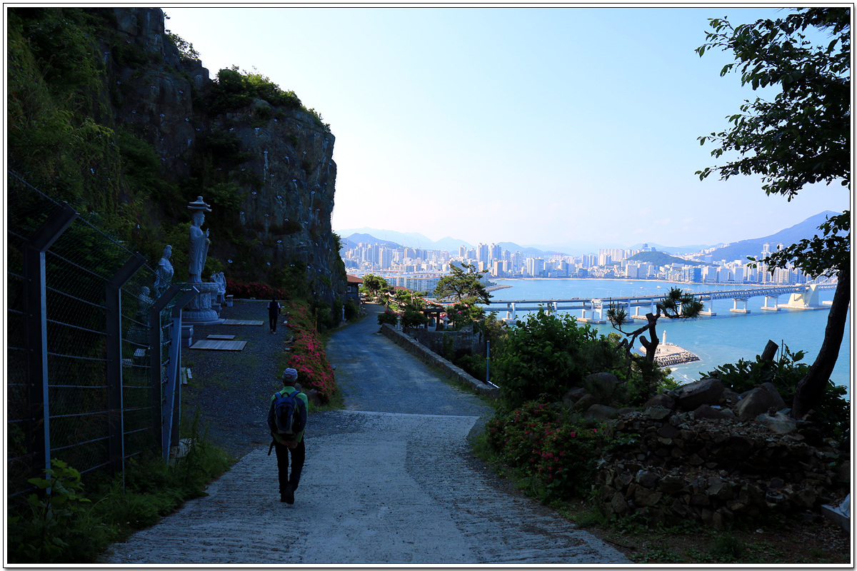 신선대 주차장으로 돌아가는 길 오른쪽 저기 오륙도가 보이는데