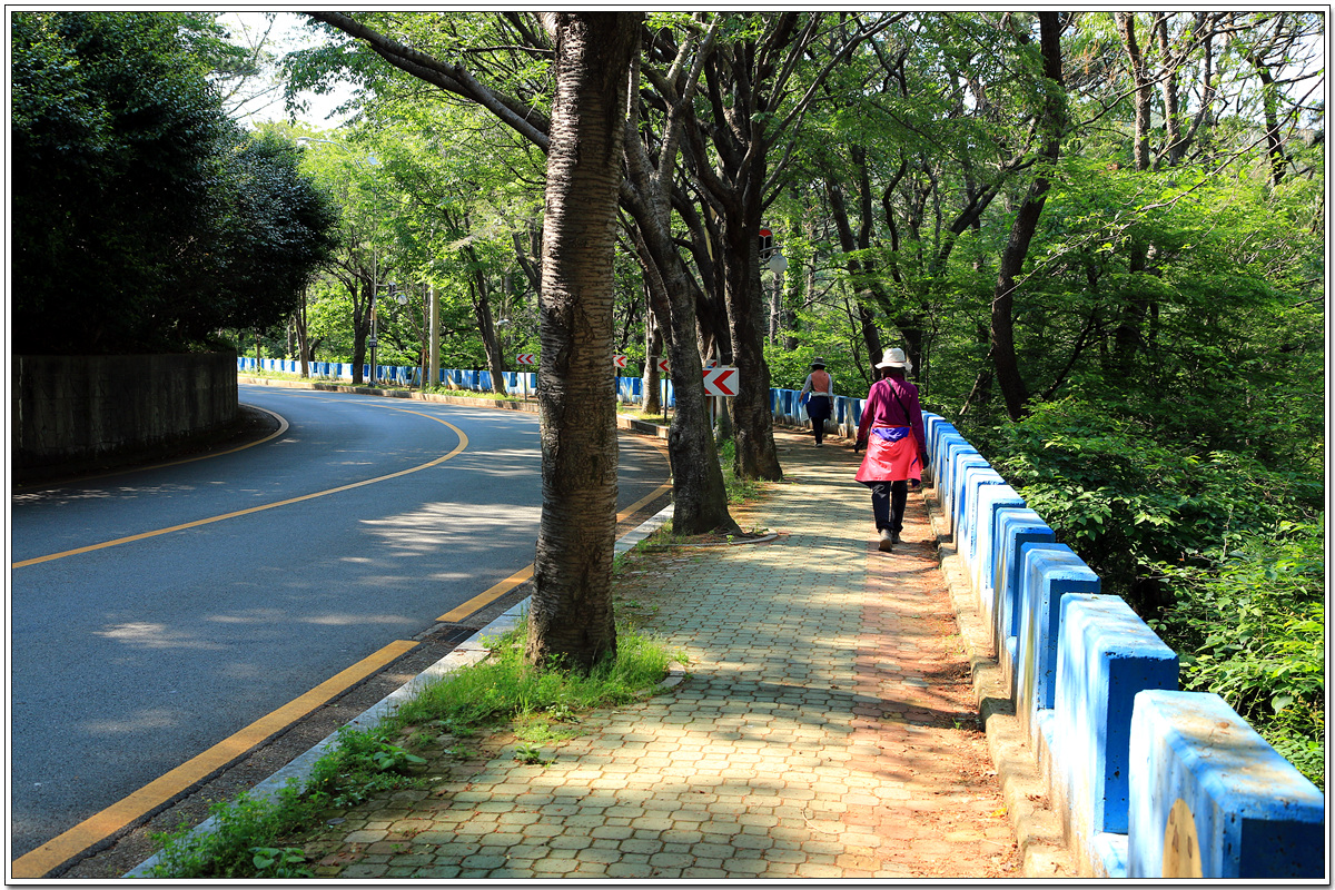 넓은 길이 왼쪽으로 휘어지는 지점에서 정면의 가파른 계단길로 오른다