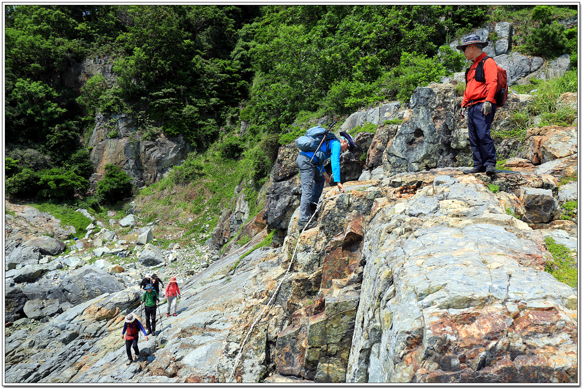 바위 벼랑위의 좁은 길을 걷는 산허리길도 결코 만만한 코스가 아니었다고 한다