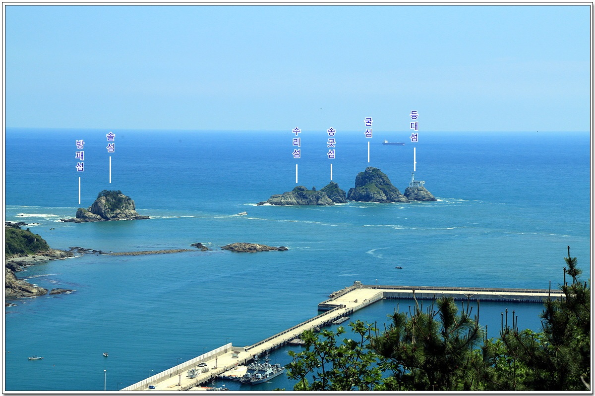 앞쪽이 방패섬과 솔섬이고, 뒷쪽에 겹쳐진 나머지 4개의 섬은 구분이 잘 되질 않는데