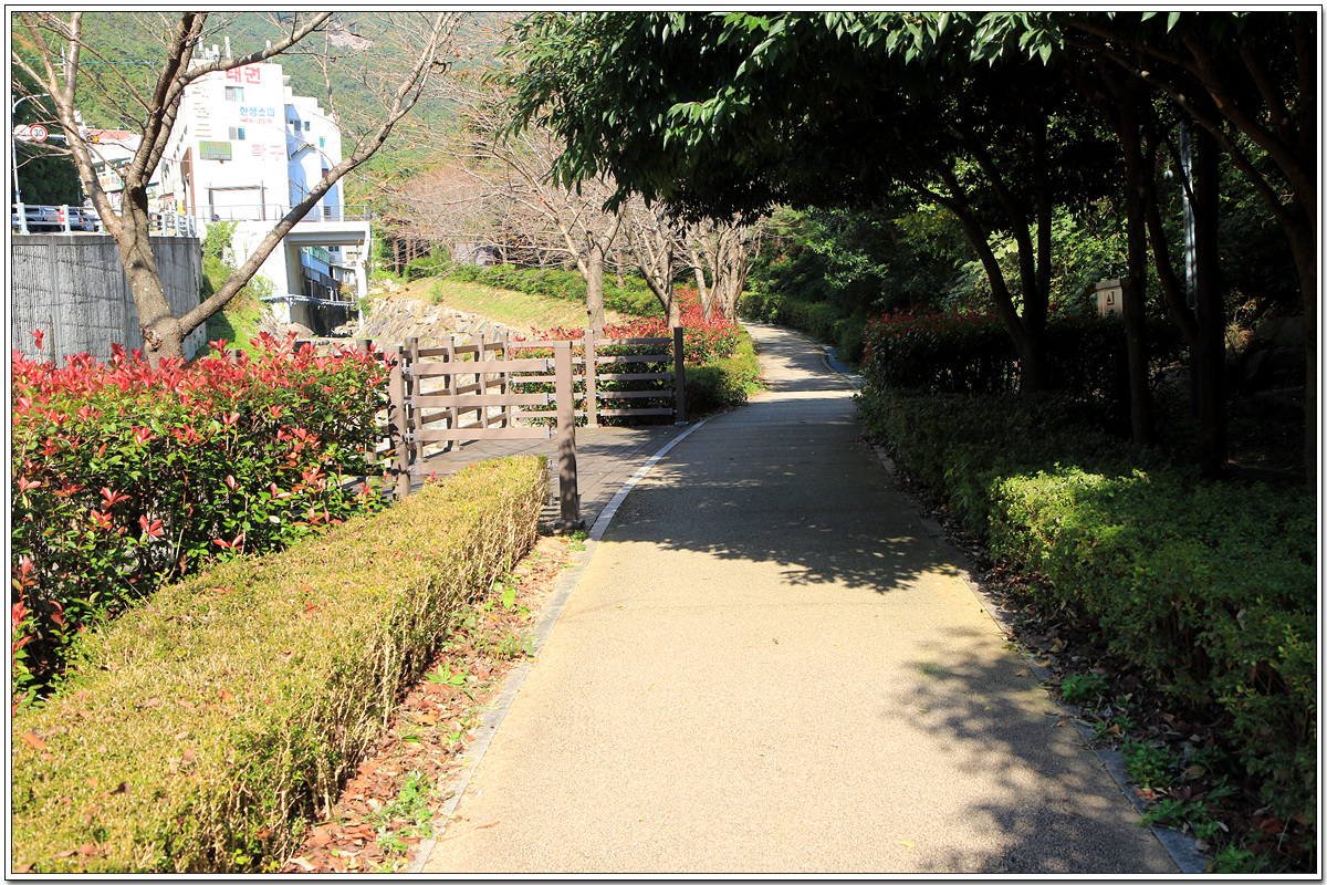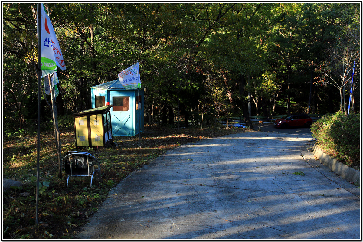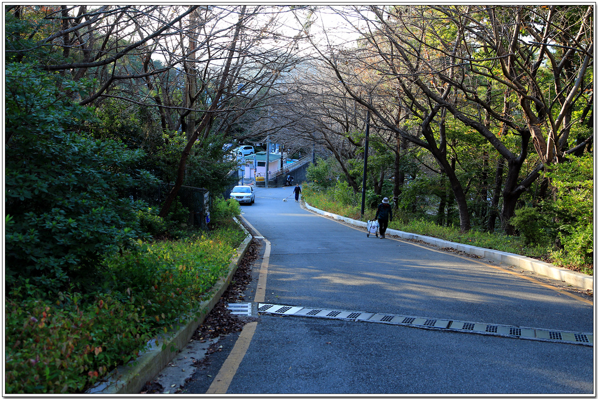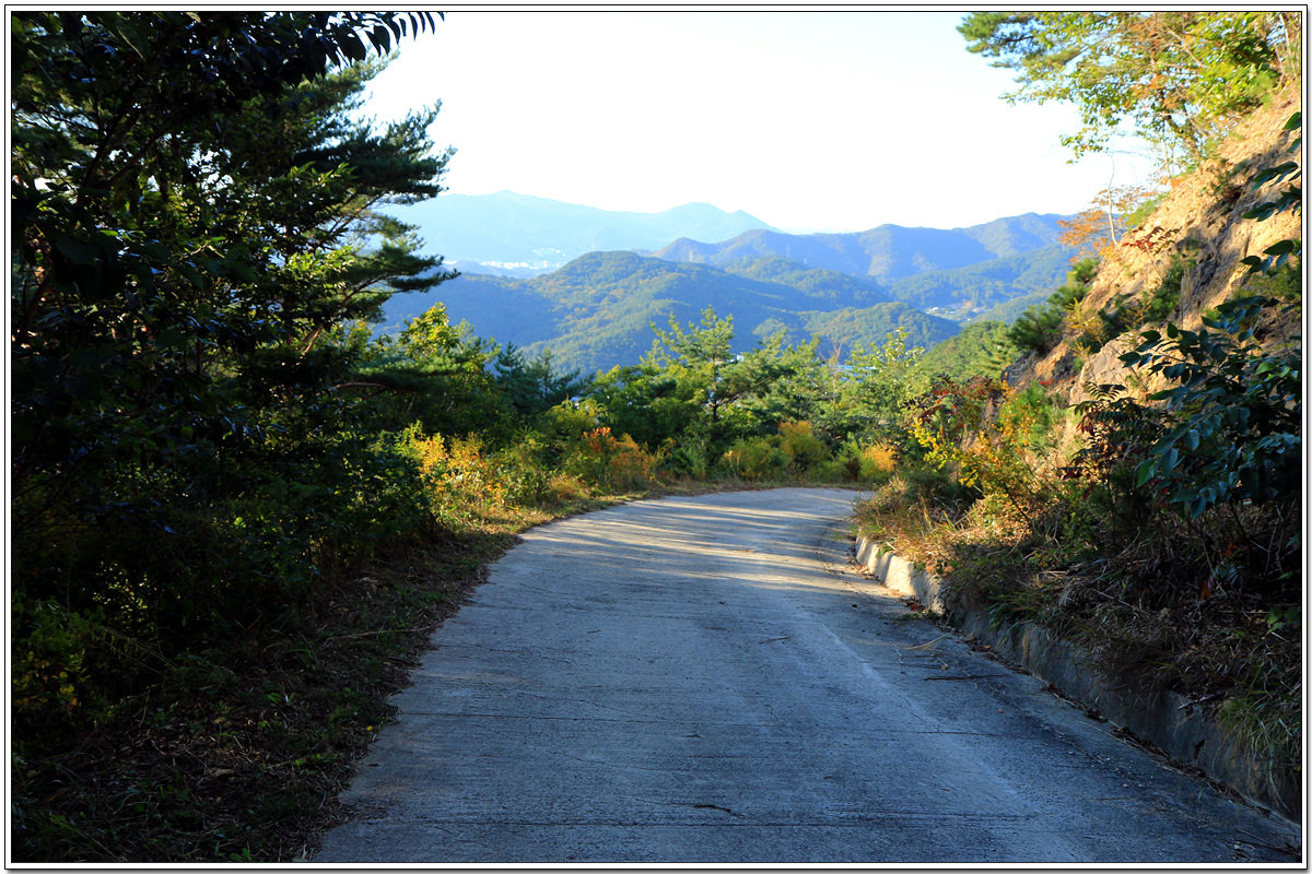 장산누리길은 끝이나고 이제 도로를 따라 1.3km 거리를 하염없이 내려가야 한다