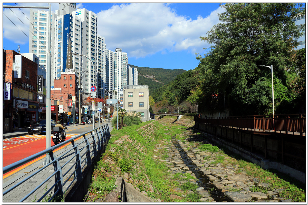 왼쪽의 도로 대신, 우동천 오른쪽에 조성된 산책로를 따라 걷는다
