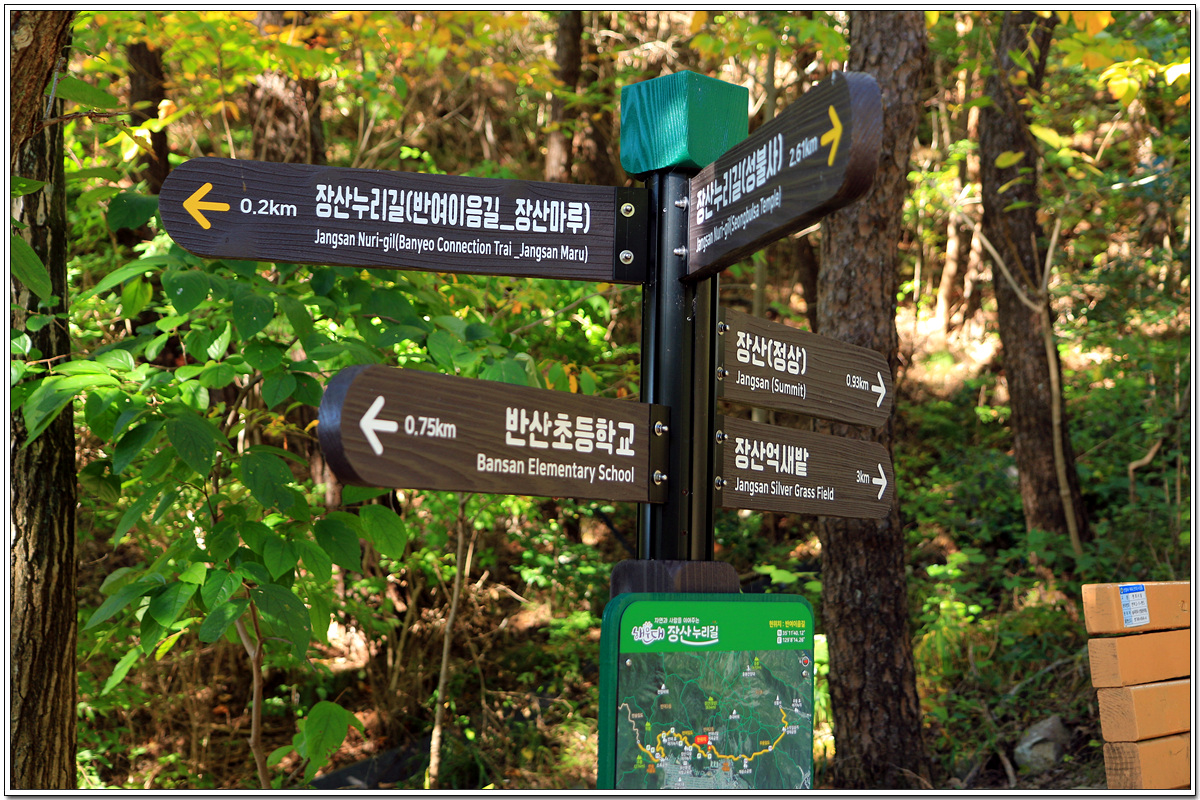 장산누리길은 반송동에서 반여동을 거쳐 우동으로 이어지는 장산 숲길이다