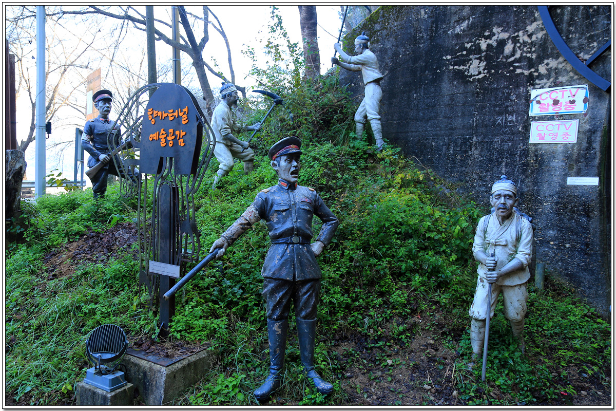 터널 남쪽 끝에는 향가 무인공방이 있고, 직진하면 향가다리인데