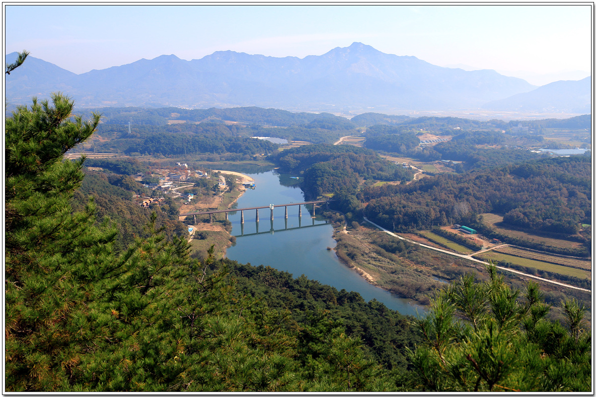 동쪽으로 향가다리와 섬진강 너머로 남원의 삿갓봉(629m), 고리봉(708.9m) 능선이 보인다