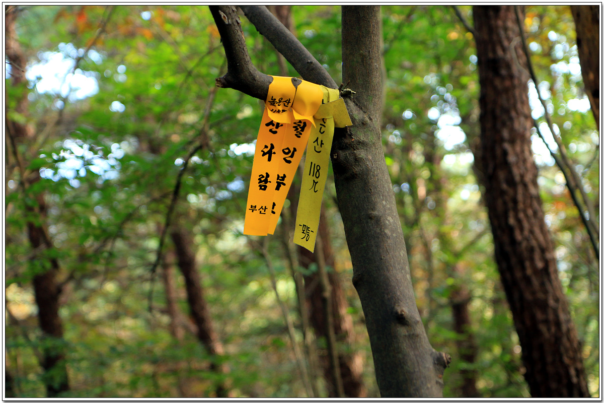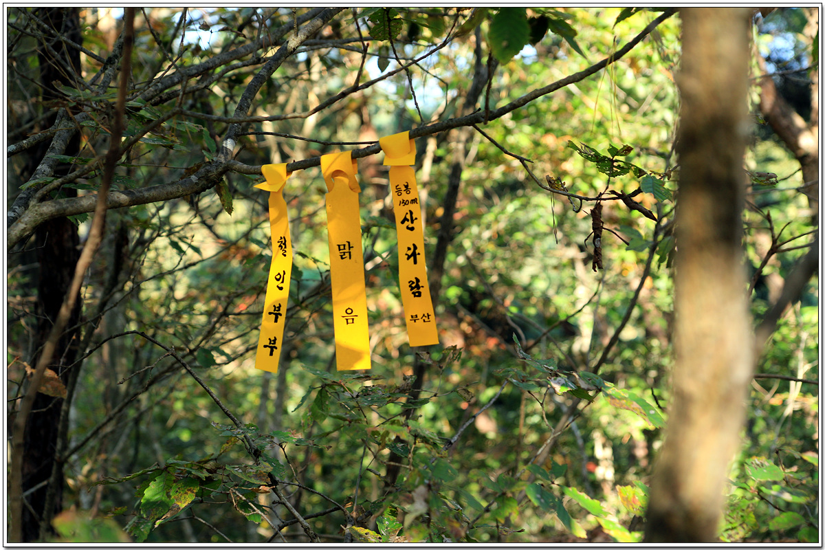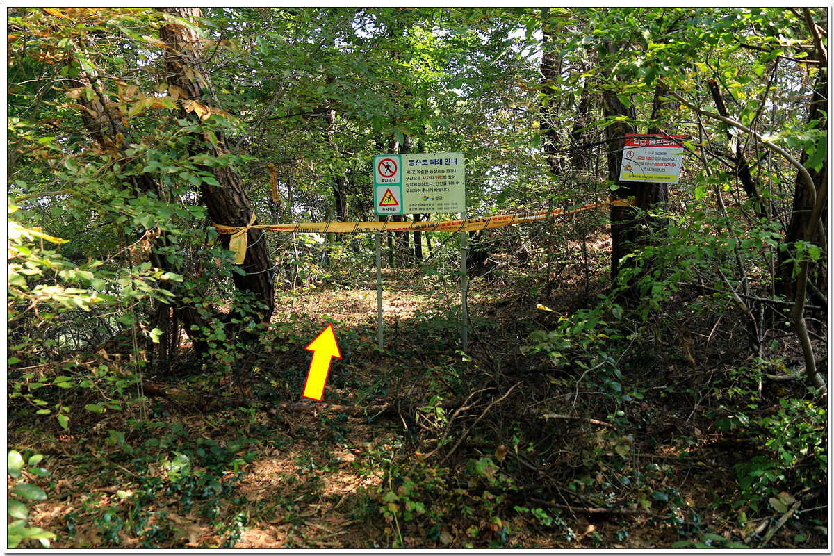 하산길은 무슨 이유에서인지 출입을 막고 있는 금줄을 넘어서 간다