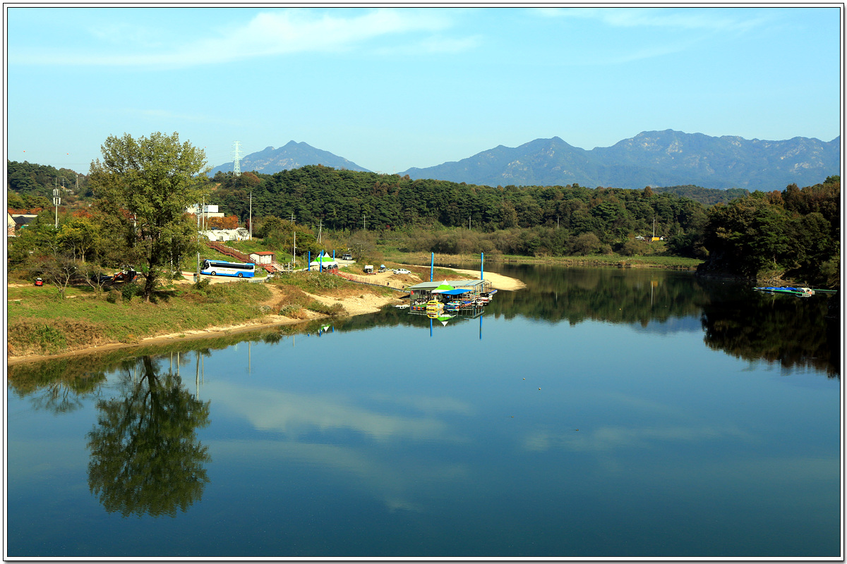 수상레저 선착장 인근에 산악회 버스가 주차하고 있는 것이 보인다