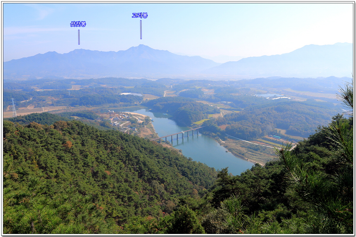 삿갓봉과 고리봉 왼쪽의 산은 문덕봉(598.1m)이다