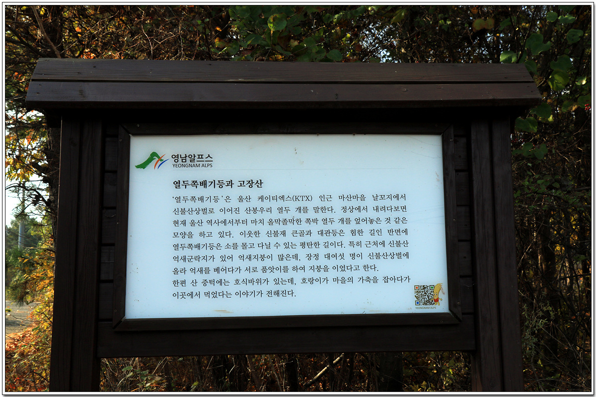 지난 10월 8일 신불산 열두쪽배기등-단조봉 산행 때 고장산 옆을 지나갔지만