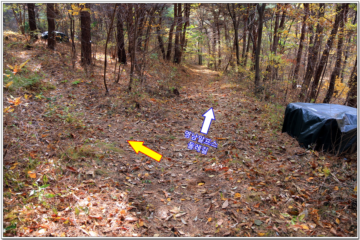 영남알프스 둘레길 이정표가 있는 삼거리에서 왼쪽으로