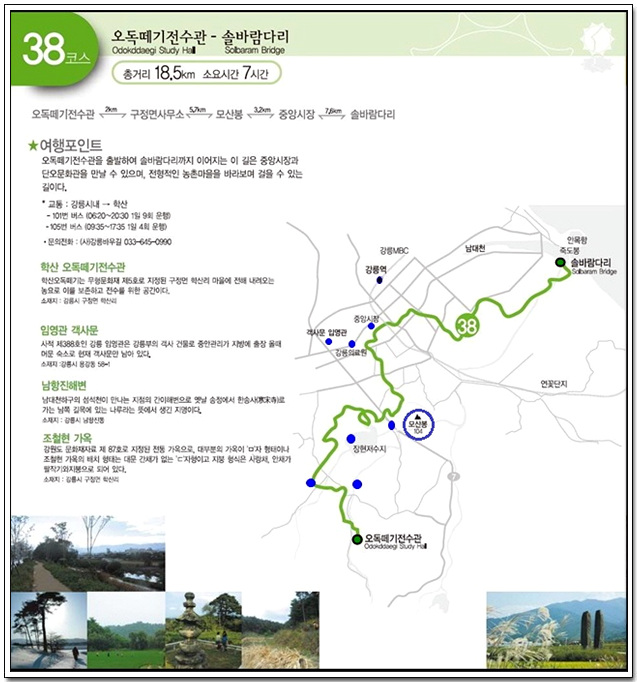 코스 도중 경포대와 허난설헌 생가 등의 유적지를 감상하며 갈 수 있다
