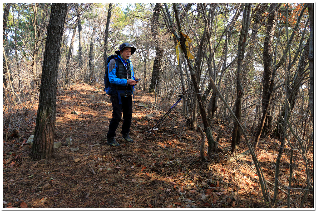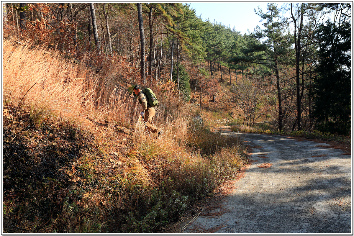 산허리를 바로 치고 오르는 개척산행까지 동원한 끝에 조그만 임도를 만나고