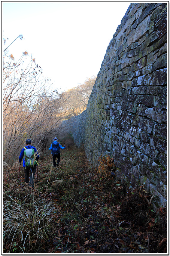 화강암으로 쌓아 올린 높이 약2~5m짜리 성곽 위를 걸어가서