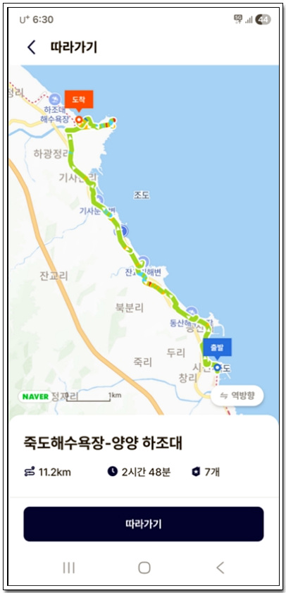 지난번 41코스 향호(香湖) 위에서부터 강릉구간을 벗어나 양양으로 접어들었고